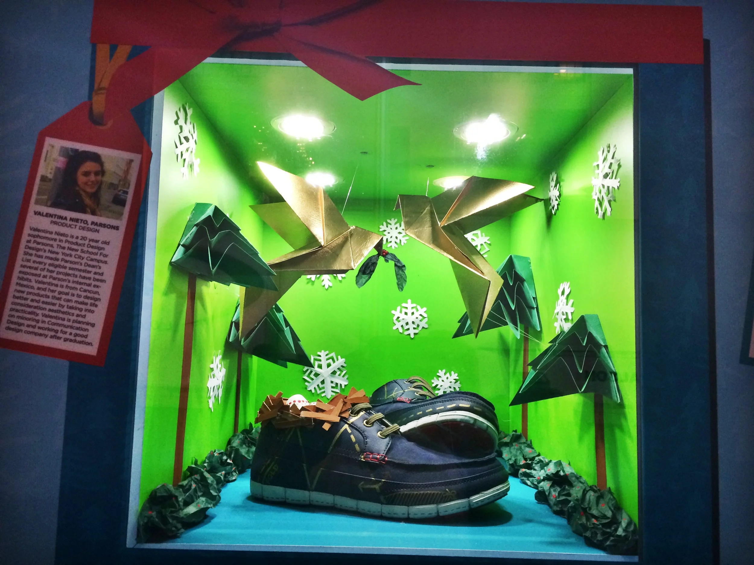 Crocs Holiday Window Display was a contest for Pratt and Parsons students. My application was chosen and I was given a box to create day two: "Two Turtle Doves" from the theme "Twelve Days of Christmas". My concept was origami inspired and carried through all of the box's details. The design was exhibited at the Herald Sq. location store during the 2014 winter holiday season.
